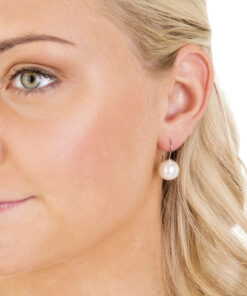 A 12 mm Swarovski Pearl hanging from our hypoallergenic medical grade titanium hook. The medical grade titanium hook is completely safe for anyone with sensitive ears. The hook also allows the hole to be clean, dry, and airy. Nickel allergy sufferers can now enjoy the beauty of pearls!