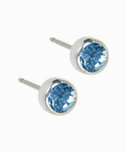 Need to look chic on a moments notice? Get a pair of our Silver Titanium Bezel earrings. They are pure medical-grade titanium, the safest metal for sensitive ears. Inside each silver-colored, titanium 5mm bezel, you’ll find a genuine Violet Swarovski Cut Crystal. It’s the same cut as a diamond.